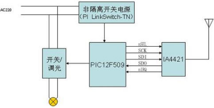 無線數(shù)據(jù)傳輸是指利用無線數(shù)傳模塊將工業(yè)現(xiàn)場(chǎng)設(shè)備輸出的數(shù)據(jù)或者各種物理量進(jìn)行遠(yuǎn)程傳輸,可以進(jìn)行無線模擬量采集也可以進(jìn)行無線開關(guān)量控制,如果傳輸?shù)氖情_關(guān)量,可以做到遠(yuǎn)程設(shè)備遙測(cè)遙控。 智能家居中的無線數(shù)據(jù)傳輸方案簡(jiǎn)介: 目前,智能家居可為用戶提供家居安全報(bào)警、可視對(duì)講、家電、照明調(diào)光、設(shè)備的室內(nèi)外遙控、電話遠(yuǎn)程控制、INTERNET遠(yuǎn)程控制等多種功能。產(chǎn)品類型包括有線、無線或者有線和無線結(jié)合,無線方式具有無布線,移動(dòng),安裝方便、應(yīng)用場(chǎng)合廣等優(yōu)點(diǎn)逐漸成為應(yīng)用主流。 采用IAI公司的無線系列芯片結(jié)合MICROCHIP的PIC系列單片機(jī)已開發(fā)出一系列的智能家居方案,如小區(qū)的水氣無線抄表方案、家居終端無線開關(guān)方案、無線燈光控制方案、終端控制器大屏幕界面QVGA方案、終端INTERNET接入方案等等。IAI公司的無線芯片系列具有集成度高、外圍元件少、功耗低、性能穩(wěn)定可靠等特點(diǎn),芯片內(nèi)部集成了FSK無線收發(fā)必需的全部功能模塊,包括多邊帶PLL合成器、PA、LNA、混頻器、基帶濾波器、中頻放大器、信號(hào)強(qiáng)度指示RSSI、數(shù)據(jù)質(zhì)量偵測(cè)DQD、電池電壓偵測(cè)、AFC和微控制器等,同時(shí)MICROCHIP的PIC系列芯片單片機(jī)具有低功耗、高穩(wěn)定性、抗干擾性好等特點(diǎn)。為此我司采用IA4421芯片已開發(fā)了兩種小通訊模塊PHY和EV-IA4421-433M-3,可以為用戶提供串口或者SPI接口,方便用戶使用和開發(fā)。 本文從軟、硬件兩方面介紹一款智能燈光控制方案,該方案分為手持RF遙控和燈光控制兩部分,可以通過手持設(shè)備實(shí)現(xiàn)家居燈光明暗的調(diào)節(jié)、全開全關(guān)、定時(shí)控制和軟啟功能。 本文介紹的智能化燈光控制方案,可以通用到任一智能家居設(shè)計(jì)方案中,方便的應(yīng)用于各種智能家居系統(tǒng)上。 燈光控制部分硬件組成框架: